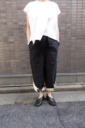 ネックのリブと前身のタックがポイントで裾はアシンメトリー