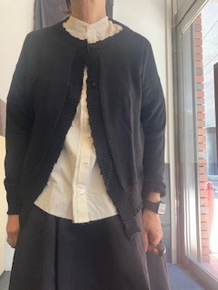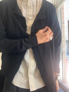 コンパクトなボディでほつれたような(ほつれません)リブの端処理と前裾の飛び出したリブが
