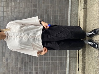 マットな表面感でドレープの効いた軽い着心地のブラウス