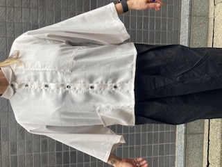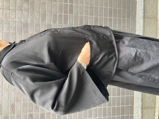 腕幅が広くインナーを重ねることもできボタンを開けて羽織としても使えます。