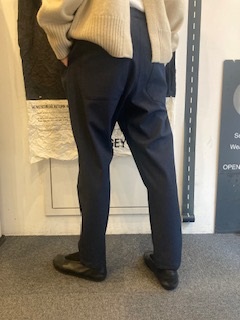 しっかりした素材ですが、厚過ぎず綺麗に穿けるストレッチの効いた細身のパンツです。