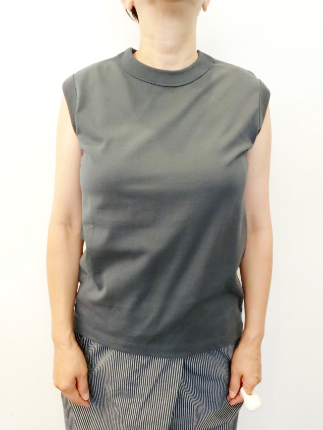 薄手ですがしっかりした生地と首の開きの狭さが人気です。