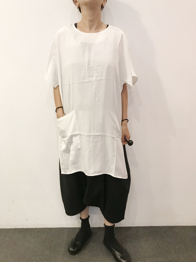 写真はスクエアータンクオールインワンの上に着ています。脱ぎ着もラクラク