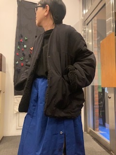 腕がカーブしていて中に着てる腕幅が広くても全く問題なく着れちゃいます。